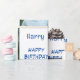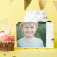 Cute blue wrapping paper with 2 photos that you can change along with name and age.
