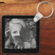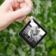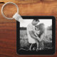 Fully customizable 2 black and white photo template double sided love text metal keychain on black.