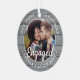 2 Photo First Christmas Engaged Gray Faux Wood Metal Ornament