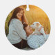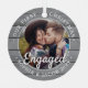 Celebrate the joyful 1st holiday of your engagement with a custom 2 photo "Our First Christmas Engaged" round metal faux grey wood ornament. All text and images on this template are simple to personalize. If preferred, the script typography can read "Together" or "Married." (IMAGE & TEXT DESIGN TIPS: 1) To adjust position of wording, add spaces at beginning or end. 2) To center the photo exactly how you want, crop it into a square shape before uploading to the Zazzle website.) The modern farmhouse style design features a rustic gray and white faux wood border, stylish calligraphy, typewriter typography, the couple's names & year, and two pictures of your choice. This unique wedding keepsake adds an elegant touch to Xmas home decorations.