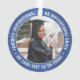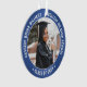 Commemorate the graduate's achievement with an elegant blue and white custom two photo round graduation Christmas ornament. Pictures and all text are simple to customize and can be different on front and back. Include any favourite inspirational quote, motivational saying, school name and degree, congratulations, thanks mom and dad, or other message of your choice. Design features a royal blue faux brushed metallic border, personalized modern typography name, school, & class year in a circle, and 2 photos of the graduate, such as senior pictures or images from the commencement ceremony. Makes a thoughtful keepsake graduation gift idea.