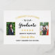 Congratulations To Our Graduate. A simple custom 2 photo and typography design to celebrate the achievement of a loved one who has graduated from high school or college. Replace each image with a vertical picture of the graduate. The black and gold text can be customized and personalized with the name and class of the graduate and their high school or college. The special celebration design is yours to customize and personalize as you wish.