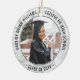 Commemorate the graduate's achievement with an elegant black and white faux marble custom two photo round graduation Christmas ornament. Pictures and all text are simple to customize and can be different on front and back. Include any favourite inspirational quote, motivational saying, school name and degree, congratulations, thanks mom and dad, or other message of your choice. Design features a grey & white marble look border, personalized modern typography name, school, & class year in a circle, and 2 photos of the graduate, such as senior pictures or images from the commencement ceremony. Makes a thoughtful keepsake graduation gift idea.