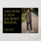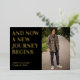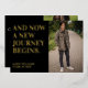 Célébrez le nouveau voyage du diplômé en direct avec une invitation spéciale de graduation de feuille d'or avec l'expression Et maintenant un nouveau voyage commence. Photo complète sur le devant avec le nom et la classe de 2022 (modifiable) Le dos a une photo complète et les détails de l'invitation de la fête.