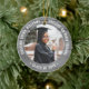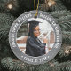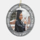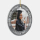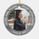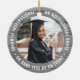 Commemorate the graduate's achievement with an elegant faux grey wood and white custom two photo round graduation Christmas ornament. Pictures and all text are simple to customize and can be different on front and back. Include any favourite inspirational quote, motivational saying, school name and degree, congratulations, thanks mom and dad, or other message of your choice. Design features a rustic grey wood look border, personalized modern typography name, school, & class year in a circle, and 2 photos of the graduate, such as senior pictures or images from the commencement ceremony. Makes a thoughtful keepsake graduation gift idea.