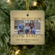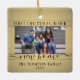 Celebrate the joy of your new place with a custom 2 photo "First Christmas in our New Home" square black and gold ceramic ornament. Text and pictures on this template are simple to personalize. (IMAGE PLACEMENT TIP: An easy way to centre a photo exactly how you want is to crop it before uploading to the Zazzle website.) Design features an elegant gold faux foil border, modern handwritten style script calligraphy, typewriter typography family name and year, and two images of your choice. Please note that gold is printed colour, not metallic foil. This unique family keepsake adds a stylish touch to Xmas home decorations or makes a thoughtful housewarming realtor gift idea. There's no place like a new home for the holidays!