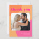 Abstract shapes retro vintage 70s style unique wedding two custom photos thank you card with your message (pre-printed text template) and bold typography in a vibrant trendy modern hot pink magenta and yellow orange chic colour palette. +++++++ Please note that all the colours are changeable. ++++++++++++ The card is suitable for casual stylish contemporary weddings. Digital download available.
