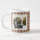 2 Photo Rustic Green Red Plaid Monogram Christmas Large Coffee Mug