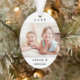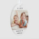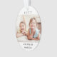 Célébrez les joies simples des vacances avec un ornement de Noël ovale 2 photo acrylique élégant. Les photos et toutes les formulations de ce modèle sont simples à personnaliser et peuvent être différentes ou identiques sur le devant et le dos. Les couleurs et les styles de police sont également faciles à customiser avec l'outil Zazzle Design Editor. Le design moderne minimaliste noir et blanc comprend deux images de votre choix et les noms typographiques classiques de la machine à écrire et année. Créez votre propre garde unique pour les décorations maison de Noël ou offrez comme un cadeau élégant à la famille et aux amis.