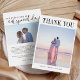 Featuring a minimalist design adorned with elegant calligraphy script and sleek typography, these budget-friendly cards exude sophistication and gratitude. Personalize with two of your favourite wedding photos, creating a lasting memento for your guests. The simple yet modern aesthetic perfectly complements any wedding theme, ensuring your appreciation shines through. These photo thank you cards capture the essence of your special day while offering a chic, understated appeal. Say thank you in style and preserve beautiful memories with these effortlessly classy cards.