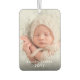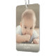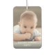 Celebrate the simple joys of family and friends with an elegant 2 photo car air freshener. Pictures and all text are simple to customize, and can be different or the same on front and back. It's easy to make it yourself. Design features a modern minimalist layout, vintage inspired art deco typography, and two pictures of your choice. Include any text such as name, year, monogram or favourite motivational or inspirational quote. This template is set up for a baby, but can easily be personalized for a family, wedding couple, best friends, kids, pets, etc. You can design your own unique keepsake gift idea for a hard to buy for person. Makes a cool and cute addition to automobile interior decor.