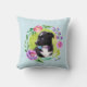 2 Photo Watercolor Floral Wreath Pet | Light Blue Throw Pillow