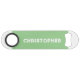 Customisez cette clé d'ouverture de bouteille de vitesse / barre avec 2 photos, un nom et des initiales. Jeu de couleurs : Vert et Blanc