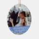 Elegant, chic "Our First Christmas" married as Mr. and Mrs. [Name] personalized photo Christmas ornament for newlyweds, with cursive typography / hand lettering, and a frame of white and silver snowflakes and little stars. Make sure you personalize the two photos, the family name, and the year. If you'd rather prefer a version with a pale pink band instead of this blue one, here's the link: