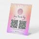 Make it easy for your customers to use contactless pay for your goods and services with this elegant, sophisticated, simple, and modern 2 custom QR codes pedestal sign. Your custom logo, calligraphy script typography and blush pink rose gold glitter drips overlay a pastel rainbow ombre faux foil metallic background. Personalize with your logo branding, 2 personal QR codes, and contact info with the customizable templates. Available in 4 sizes: 4”x6”, 6”x8”, 8”x10”, and 10”x12”. Makes a chic, professional, and stylish statement that will help your customers pay safely.