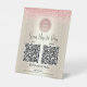 2 QR Codes Custom Logo Pink Glitter Pay Here Gold Pedestal Sign