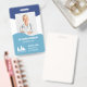 Vertical employee ID with a deep blue colour and a lighter blue wave shape printed with your employee's photo, name, title, and ID number. Personalize the practical employee ID badge with your company's logo, the name, and department.