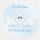 2 stylised white swans round sticker