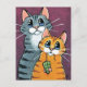 2 Tabby Cats with Toy Mouse Illustration Postcard