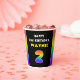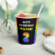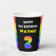 This upbeat and joyful birthday paper cup design features a large number “2“ with a colourful rainbow spectrum inspired gradient pattern, along with the message “HAPPY 2nd BIRTHDAY,”, and an editable recipient name. Birthday themed paper cups like this might be used at a birthday party celebrating somebody’s 2nd birthday. [~Z0000639]