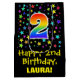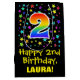 This colourful, exciting, and vibrant birthday giftbag design features a large number "2" with a rainbow spectrum gradient inspired pattern, along with the message "Happy 2nd Birthday,", and a customizable recipient name. It also has a background pattern featuring star shapes of various sizes and colours. A birthday themed gift-bag like this might be a fun way to wrap a gift or present being given to somebody who is celebrating their second birthday. [~Z0000510]