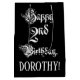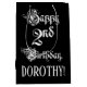This luxurious and fancy birthday themed giftbag design features the message “Happy 2nd Birthday,” in ornate script style text, on a black coloured background. It also has a personalized recipient name. A birthday themed giftbag like this might be used when giving a gift or present in celebration of somebody’s 2nd birthday. [~Z0000557]