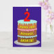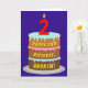 The front of this fun and cheerful birthday-themed greeting card design features a depiction of a three-tier birthday cake having a number-shaped candle on top showing the age “2“, along with the message “HAPPY 2ND BIRTHDAY,”, and a custom recipient name. The inside features a personalized birthday greeting message, or could perhaps be cleared and left blank if a message is to be written by hand instead. An upbeat, editable birthday greeting card like this might be a fun way to send birthday greetings to somebody who is celebrating their second birthday. [~Z0000620]