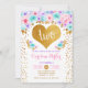 Second Birthday Party Invitation. Elegant design in faux glitter gold with floral accent. Invite card with glitter heart and "Two" in script font with confetti. Purple, lavender pink, teal and white. Perfect for a stylish 2nd bday celebration.