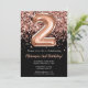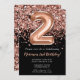 2nd Birthday Invitation Black Rose Gold Glitter Elegant black and rose gold 2nd birthday party invitation for a 2 year old girl with modern script writing and fun foil balloons.