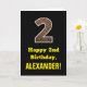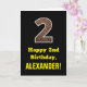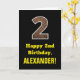 2nd Birthday: Name, Faux Wood Grain Pattern "2" Card
