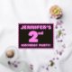 The front of this bold and fun second birthday party foil invitation/announcement card features a personalized name, a large number “2nd”, the message “BIRTHDAY PARTY!”, and a border, all featuring a feminine light pink and dark pink lines pattern. The back features personalized details about the event, such as the date, time, place, and any other information that may be important. Editable invitations like these might be used to invite guests to a birthday party being held to celebrate somebody’s 2nd birthday. [~Z0000597]