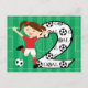 A cute soccer design for the 2nd Birthday of a future soccer player or soccer fan, featuring a large number two with soccer balls and the word "goal" written inside it. A young soccer girl in a red and white soccer uniform stands next to the number. Perfect for a 2nd Birthday gift or party favour. Visit CelebrationBazaar to view the collection of gifts, party favours and stationery featuing this cute soccer design. Other numbers and team colours available. Artwork created by Babystar Designs