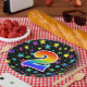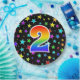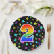 This fun, cheerful, and colourful paper plate design features a large number "2" containing a rainbow spectrum gradient inspired pattern colouring. The background features a colourful pattern of star shapes. Fun paper plates like this might be used at a celebration being held to honour somebody’s second birthday, or a couple’s 2nd wedding anniversary, or some other second event. [~Z0000493]
