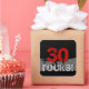 This modern birthday design in red and white grunge lettering on a black background is so trendy! Whether you think being 30 rocks, sucks, or bites, you can customize your sticker to let the world know your thoughts.