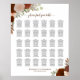This beautiful 30 table autumn floral wedding seating chart includes table assignments for 300 guests with 10 seats per table. The rustic boho chic design features hand painted watercolor roses and garden foliage in shades of rust orange, burnt umber, and coral peach. The script calligraphy title reads "please find your table" and there is space for the names of the couple and wedding date at the bottom. Wonderful way to add beauty and style to your wedding reception while making it easy for your guests to find their tables.