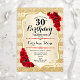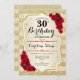 Invitation du 30e anniversaire. Design élégant en or et rouge. Comprend des bandes d'or de parties scintillant fausse, des roses rouges police de caractères stylisés et des confettis. Parfait pour une fête d'anniversaire glam.