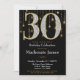 Une élégante invitation à la fête du 30e anniversaire en noir et or, avec une grande 30 avec des diamants et l'apparence d'or ainsi qu'un rideau de citron de lumières dorées. Pour le 30e anniversaire homme ou femme dans votre vie.