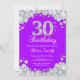 Invitation du 30e anniversaire. Diamant de rhinestone mauve et argenté. Élégant invitation du Bassin d'Anniversaire. Anniversaire adulte. Les femmes, anniversaire. Hommes Anniversaire.