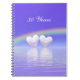 Notebook with my artwork of two pearl hearts floating on the water under a rainbow. Customizable text says "30 Years".
