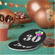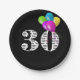 Colourful balloon bouquet with ribbons and number 30 on black background.