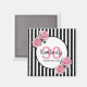 30th birthday black stripes pink florals name magnet