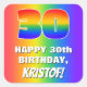 This cheerful and joyful birthday square sticker design features a large number “30” having a colourful rainbow spectrum inspired gradient pattern. It also features the message “HAPPY 30th BIRTHDAY,”, and a customizable recipient name. The background also features a fun multicolored rainbow spectrum inspired gradient pattern. Fun, exciting, personalized stickers like this might be given as a birthday gift, or used while wrapping gifts, or perhaps used as a birthday party decoration when celebrating somebody’s thirtieth birthday. [~Z0000571]