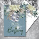 Dusty blue is the background colour for this floral Disco ball elegant custom Birthday design.