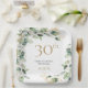 These exquisite, watercolor eucalyptus with gold leaf embellishments 30th birthday party 9" square paper plates are perfect for your big celebration. Their soft flowy design is modern yet traditional. They'll look fabulous on your counters, buffet or tables. Select Personalize this template to make them uniquely your own. In seconds you will see your stunning 30th birthday plates.