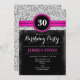 30th Birthday Invitation - Hot Pink Black Silver
