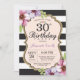 30th Birthday Invitation Women. Floral Gold Black