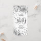 Elegant Glam Silver Floral Glitter 30th Birthday Script template featuring party menu text, flower arrangements, glitter confetti and modern typography script.