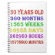 30th birthday counting down the years, days, months, hours, and minutes. A birthday present to give pause for thought! Leap years have been taken into account!