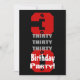 This design in red, white, and black with its big rivet numbers in is a fun way to send out 30th Birthday invites.