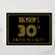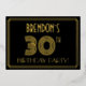 The front of this vintage-look thirtieth birthday party/celebration foil invitation features a customizable name, a large art deco style inspired number “30TH”, the message “BIRTHDAY PARTY!”, and a border pattern consisting of lines. There is a black-coloured background on the front by default, but it can be customized to a different colour if desired. The back features personalized details about the event, such as the date, time, location, and any other relevant information. Elegant, luxurious, personalized invitations like these might be used to invite guests to a birthday party/celebration being held to honour somebody’s 30th birthday. [~Z0000590]